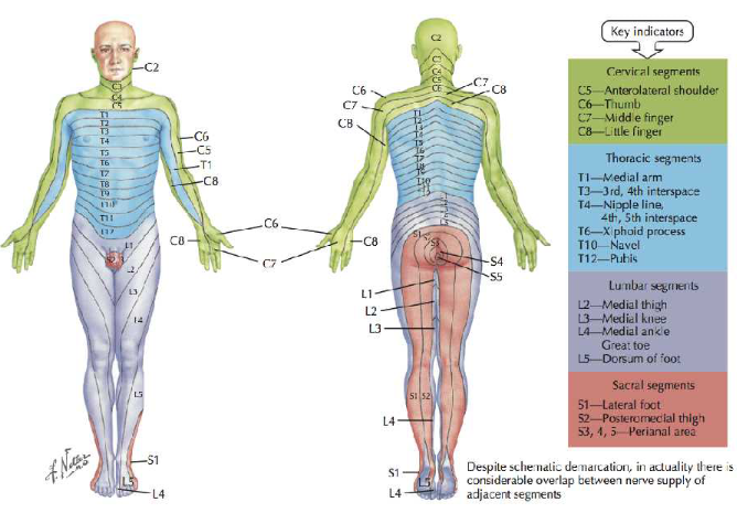 TERRITOIRES RADICULAIRES SENSITIFS CUTANÉS (Dermatomes)
