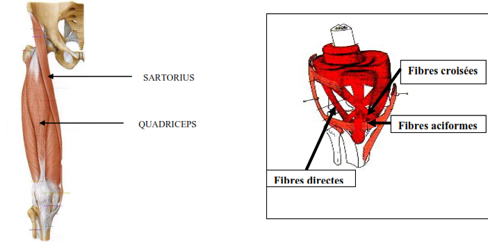 - – Le droit antérieur qui naît par deux tendons (le tendon direct et le tendon réfléchi au niveau du bassin).