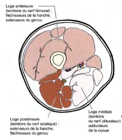 Coupe horizontale au niveau du 1/3 moyen de la cuisse