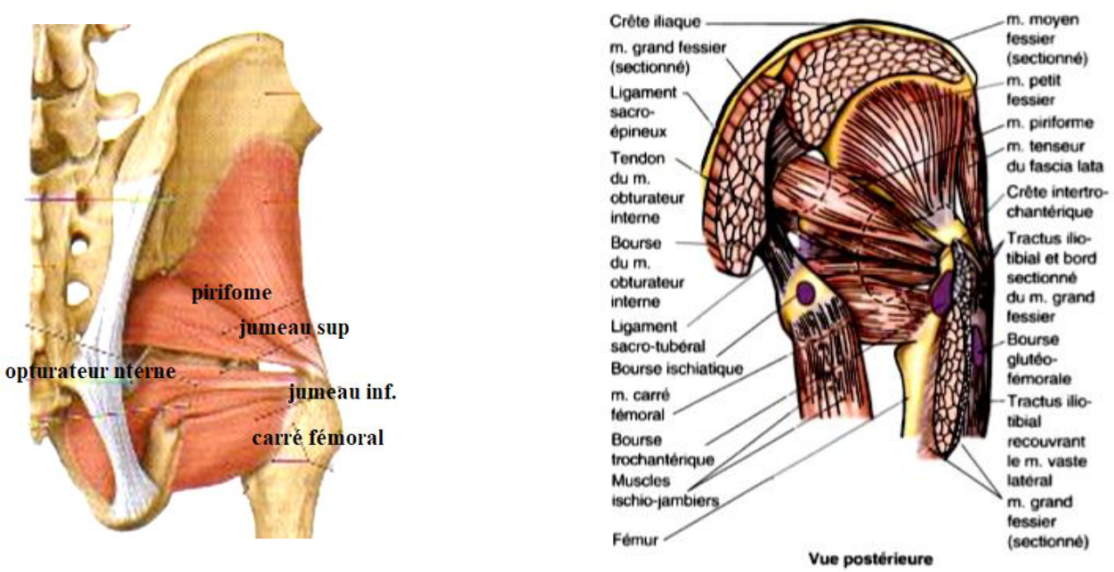 Ce sont tous les muscles qui s’étendent du bassin au fémur. Tous ces muscles sont placés dans la région glutéale (fessière), sauf le psoas (iléo-psoas) qui est ventral.