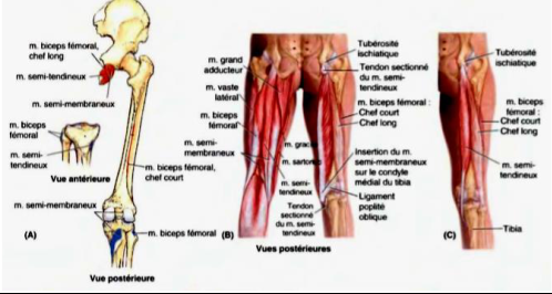 - Action : – Fléchisseur de la jambe sur la cuisse et la cuisse sur le bassin.