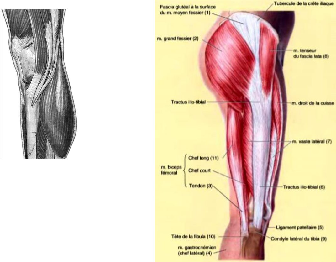 Tractus ilio-tibial qui se fixe sur le condyle latéral du tibia. |