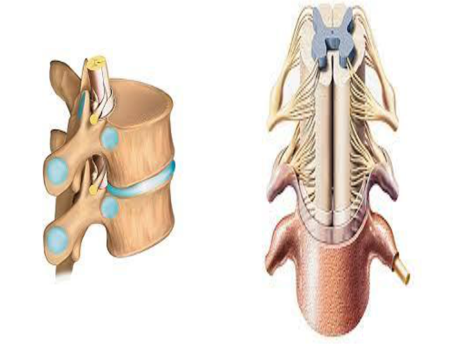 -au niveau de chaque processus transversaire les deux racines se réunissent pour former le nerf spinal