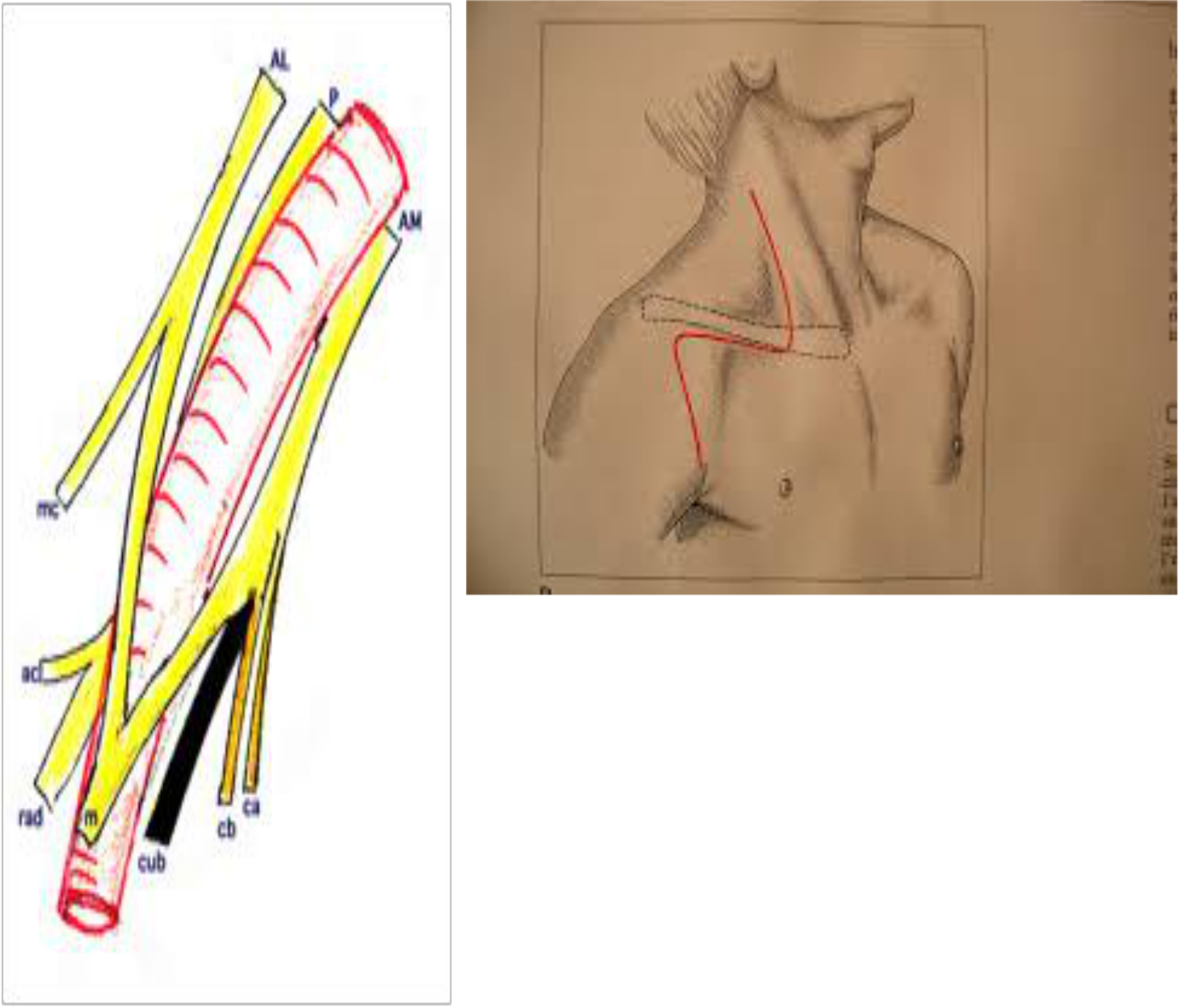 3- la veine axillaire et ses branches , ainsi que la veine céphalique du bras