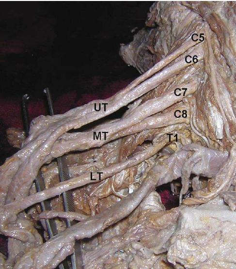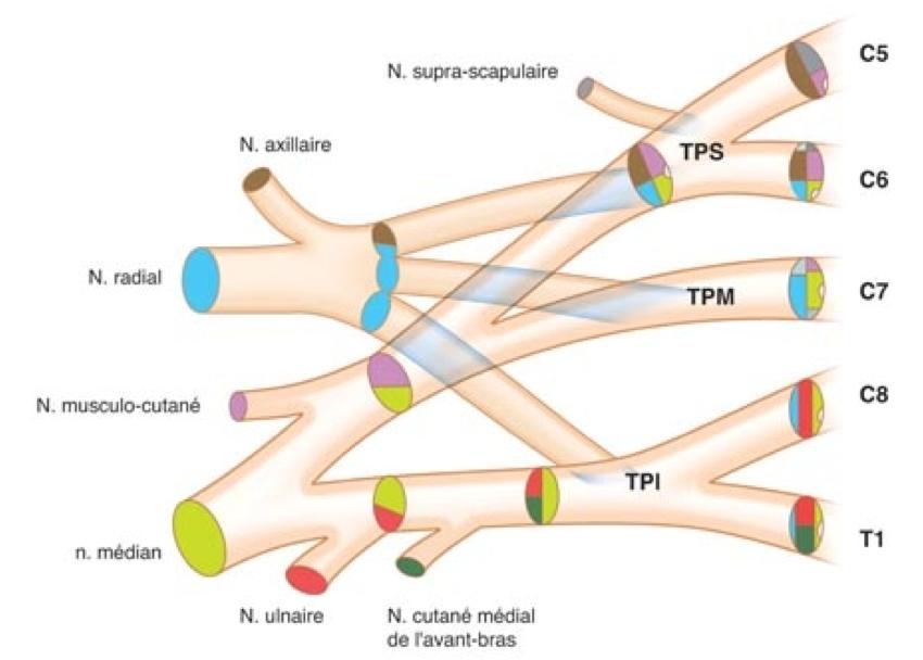 Il est formé de l’union des rameaux antérieurs des nerfs spinaux de C5-Th1 unis en trois troncs :