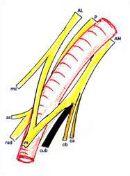 • dan la fosse axillaire les branches du plexus brachial est en rapports avec la veine axillaire