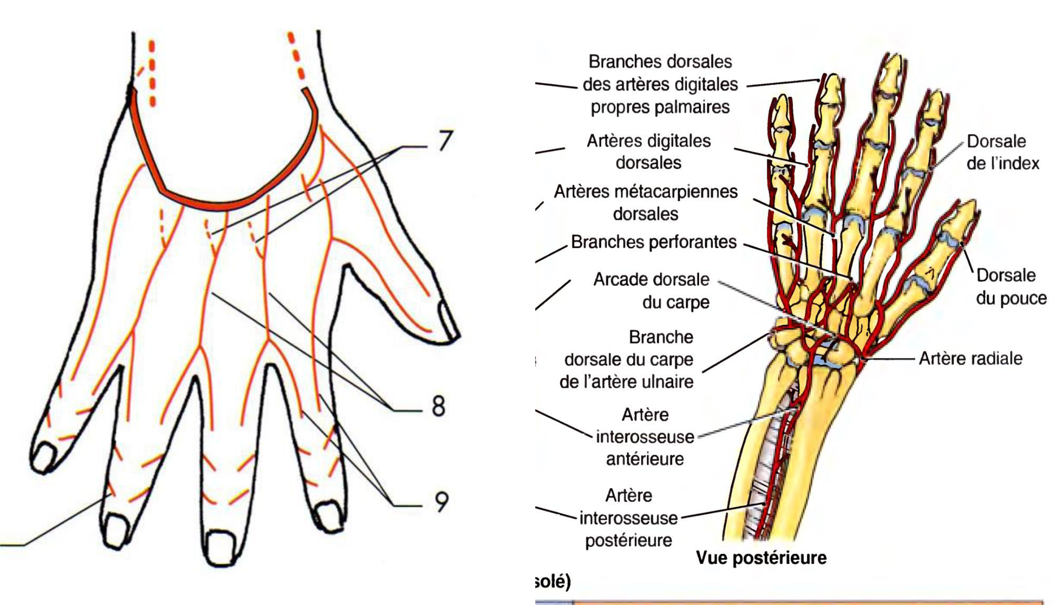 • . Les artères métacarpiennes ou interosseuses dorsales (2eme au 5ème doigt).