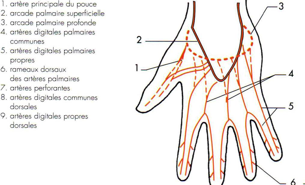 plan profond en avant en arriere Vascularisation arterielle du doigt