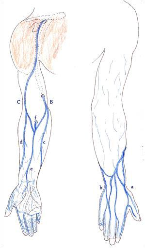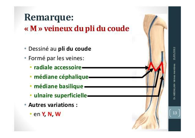 • Dans cette arcade se jettent également la veine céphalique du pouce et la veine salvatelle du 5ème doigt
