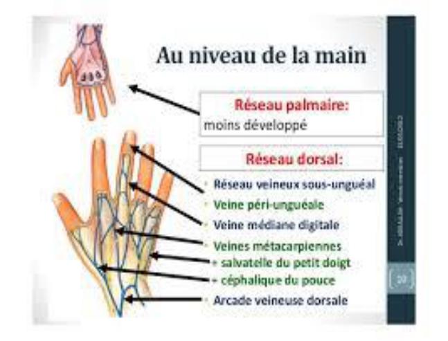 • Les veines digitales palmaires rejoignent les l’arcade veineuse palmaire