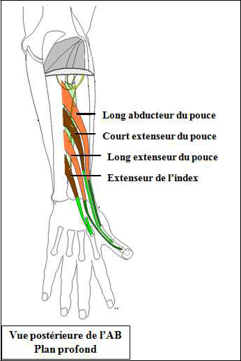 face post de l’ulna, du radius et membrane interosseuse (situé sous le long abducteur)
