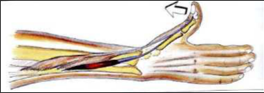 face post de l’ulna et la membrane interosseuse (situé sous le court extens du pouce.)
