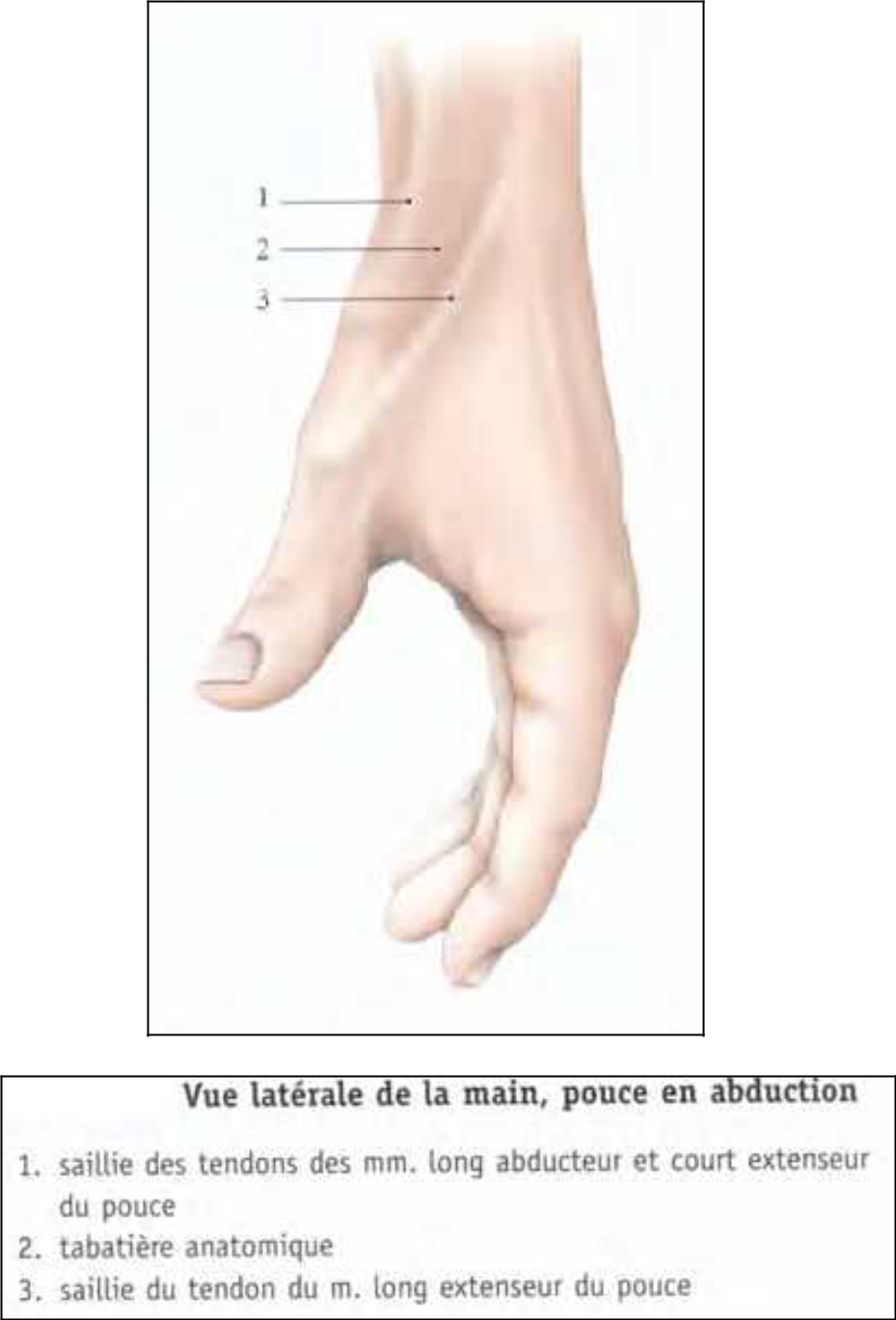 Fossette latérale de la face dorsale du poignet. Elle est plus apparente lors de l’extension du pouce