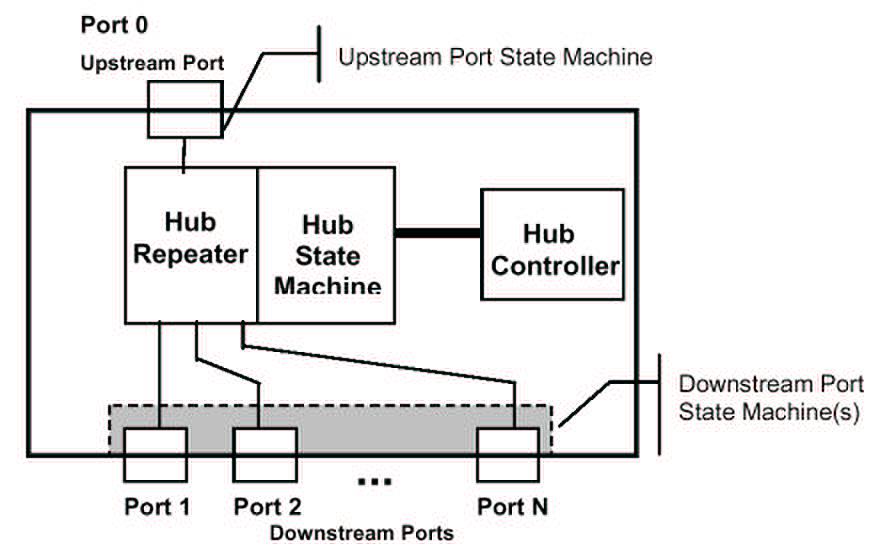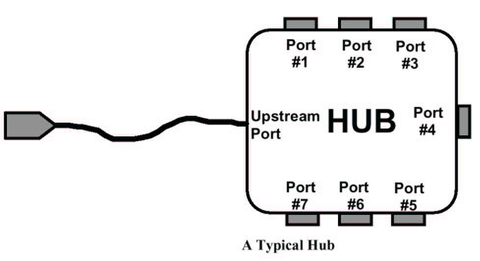 Un HUB possède une connexion flux montant (upstream) destinée au raccordement vers l’hôte ou le HUB de niveau supérieur dans l’arborescence, il est de type « A ».