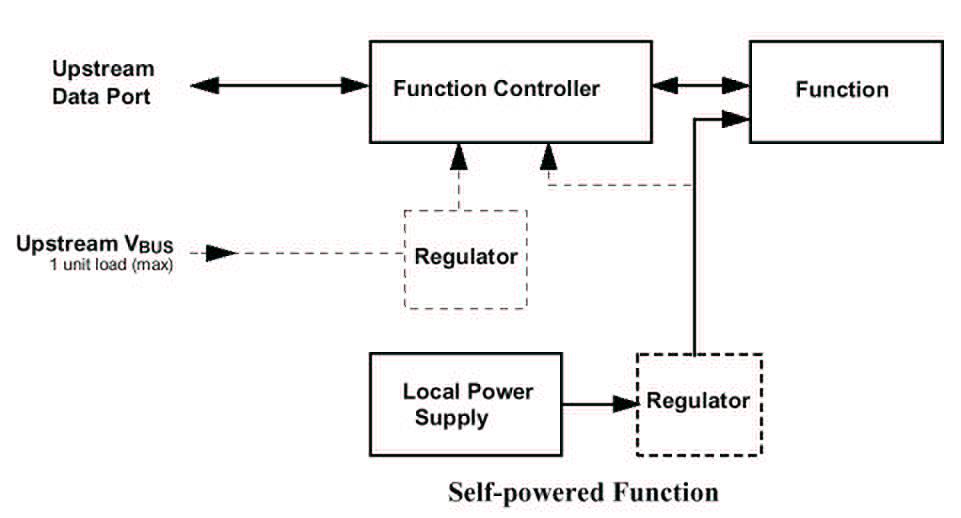 Il tirent leur source d’énergie pour fonctionner du bus USB lui-même. Il ne doivent pas consommer plus de 100mA. Ce sont les claviers, souris, joysticks, etc…..