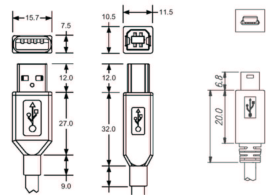 Les cordons auront donc une extrémité de type « A » et l’autre de type « B ou mini-B ».