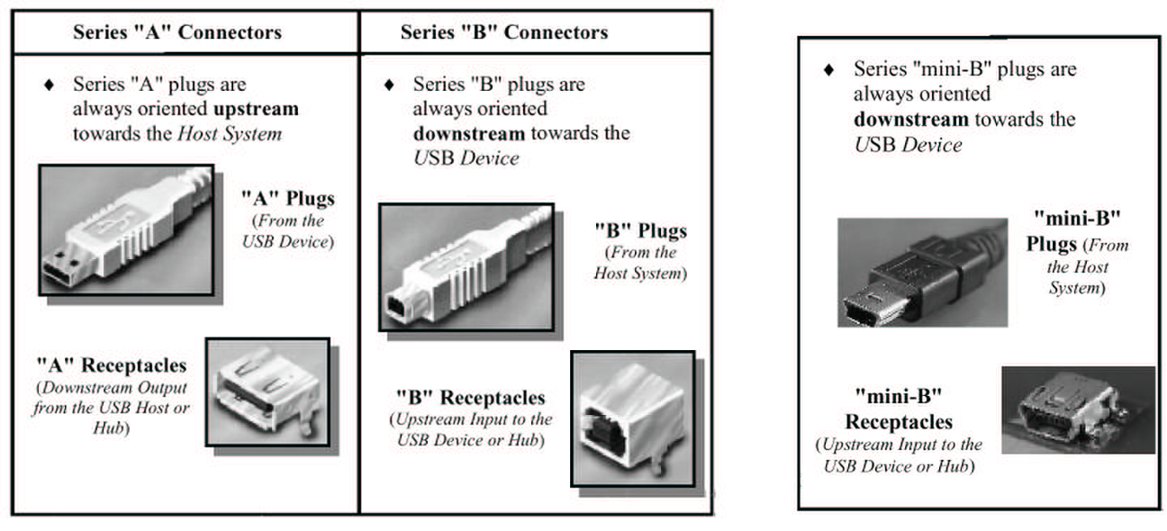 Les connecteurs de type « B » et « mini-B » sont « downstream » et seront sur les périphériques.