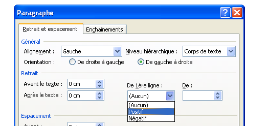 Pour effectuer un retrait 1ère ligne on sélectionne le paragraphe concerné, ou on clic dedans pour placer le curseur au sein de ce dernier puis on accède à la boîte de dialogue « paragraphe » à partir du menu déroulant format ou du menu contextuel avec le bouton droit On clic ici |