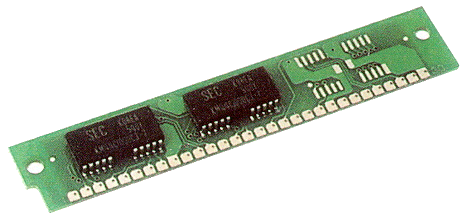 Fig. 1: Des barrettes SIP, avec leurs fines pattes soudées sont presque aussi délicates à installer que les puces traditionnelles