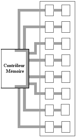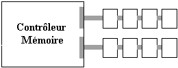 Les barrettes mémoire ( SIPP, SIMM et DIMM ) sont organisées en bancs sur les cartes mères et les cartes mémoires. Vous devez connaître l’agencement du banc de mémoire et sa position sur les cartes mères et les cartes mémoires quand vous ajoutez de la mémoire au système. En outre, les diagnostics mémoire indiquent les emplacements des erreurs par octet et par adresse et vous devez utiliser ces chiffres pour savoir où se trouve le banc défectueux. Les bancs de mémoire correspondent, en général, à la capacité du bus de données du microprocesseur.