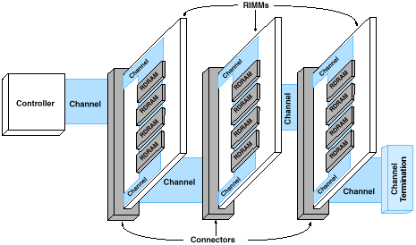 Par exemple un système à un seul canal de cette mémoire peut atteindre jusqu’à 1,6 Go/s de taux de transfert. L’avantage principal avec la Rambus est que des contrôleurs peuvent être conçus pour utiliser 2 ou même 4 canaux en parallèle. Un système à 2 canaux atteindra 3,2 Go/s tandis qu’un système à 4 canaux pourra aller aussi haut que 6,4 Go/s !
