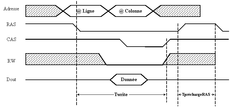 - Twrite est la durée du signal RAS en écriture, il est souvent égale à TaccèsRAS.