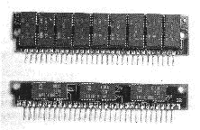 Fig. 2: Les barrettes SIMM 30 broches sont plus pratiques. L’échancrure à gauche évite qu’elles soient montées à l’envers. Ce sont des barrettes 8 bits.